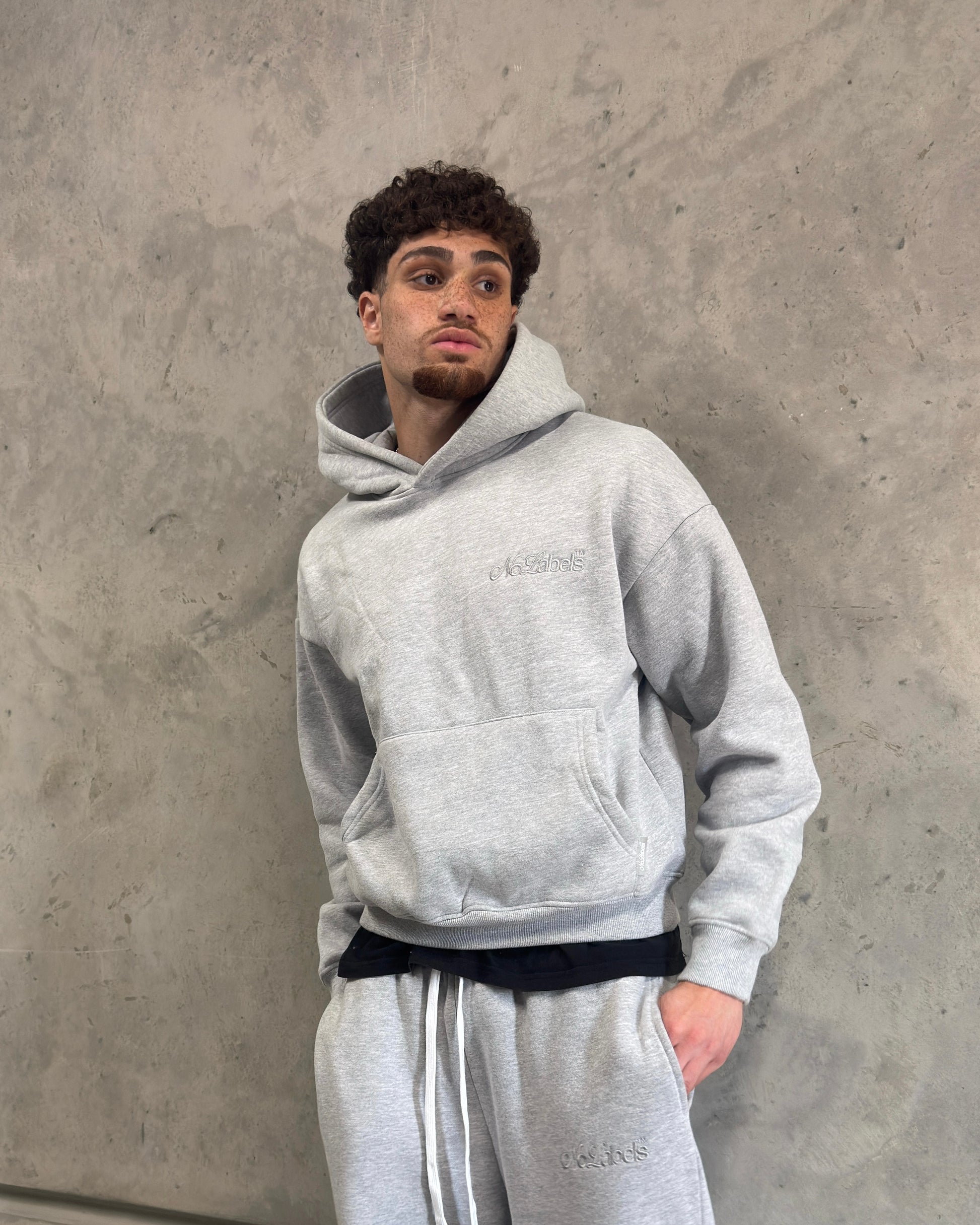 The No Labels set is built for consistency. Sharp, minimal, and effortlessly put-together, it delivers that clean, refined look you reach for daily. The hoodie’s no-zip pullover design keeps things streamlined, while the straight-leg joggers fall perfectly on the shoe—no stacking, no fuss. Whether you're dressing it up or winding down, this essential holds its shape and purpose.